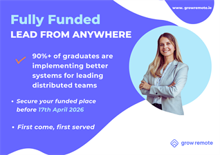 Over 8 weeks, Grow Remote will partner with you through a blended learning environment, to bring some of the experiences, best practices, lessons learned, guidance, and advice around considerations for managing teams remotely. The course value is €1,350 per head.